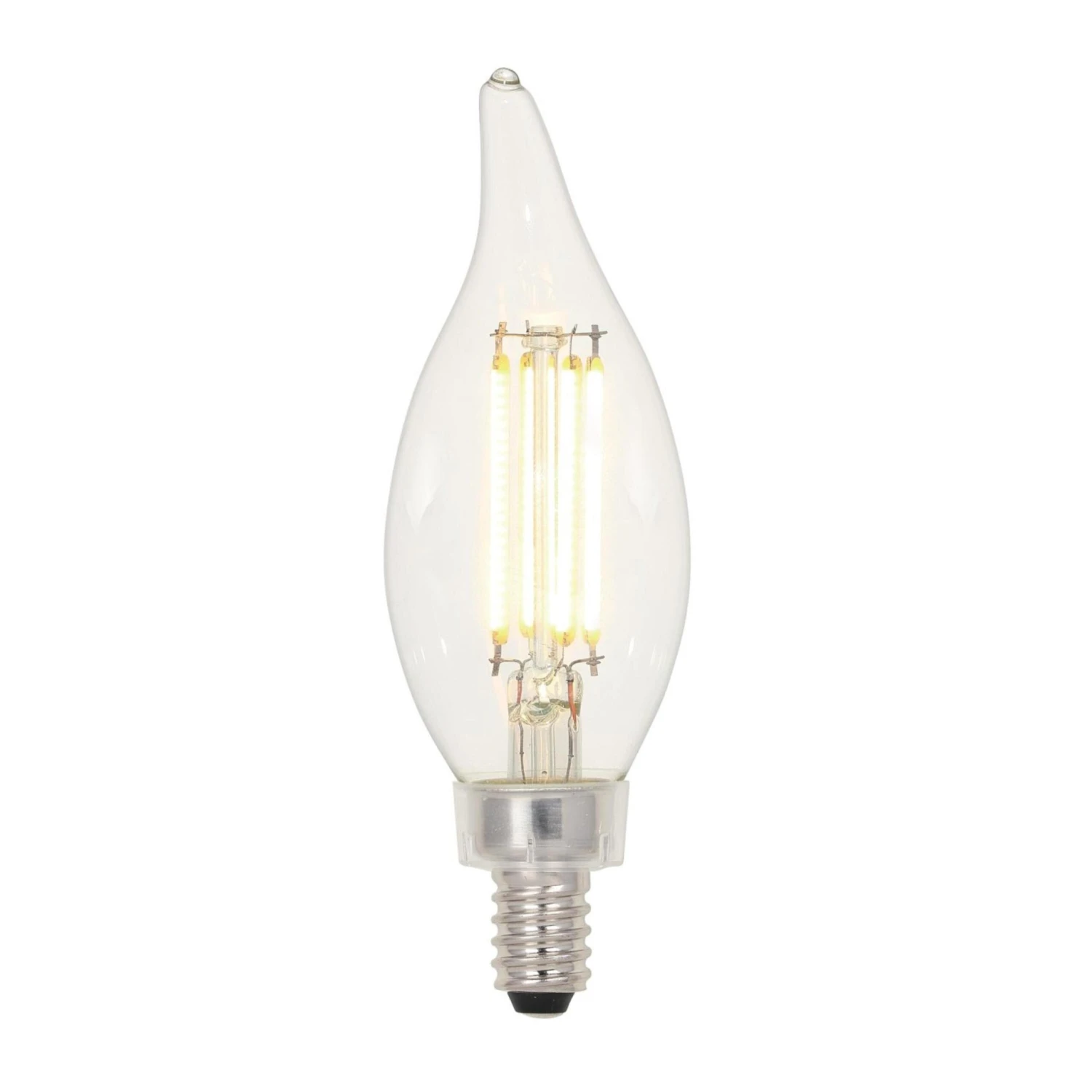 The Westinghouse 6 pack of 4.5W CA11 Filament LED Dimmable Light Bulbs offers an energy-saving replacement with the look of incandescent flame tip light bulbs. These LED bulbs light up instantly and are ideal for use in chandeliers and sconces where the bulb is visible, producing soft white (2700K) light. Rated for damp locations and can be used in enclosed fixtures such as outdoor rated wall fixtures and post lanterns. In addition, the CA11 LEDs contain no harmful mercury compared to CFL bulbs, reducing their environmental impact. Make the switch to Westinghouse LED light bulbs. Westinghouse is a trusted, global brand. Westinghouse knows lighting and offers products with exceptional quality, reliability, and functionality. Product reference number 5317020.
