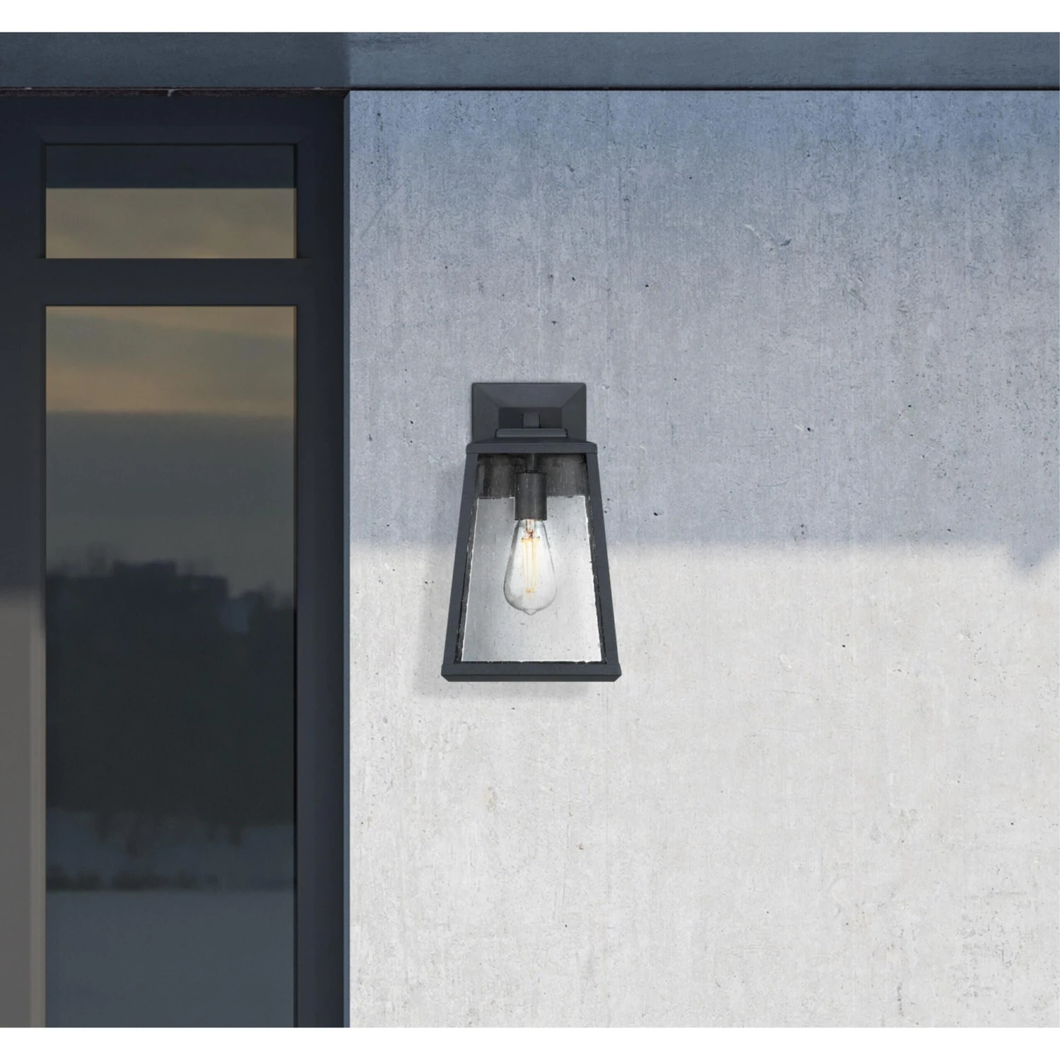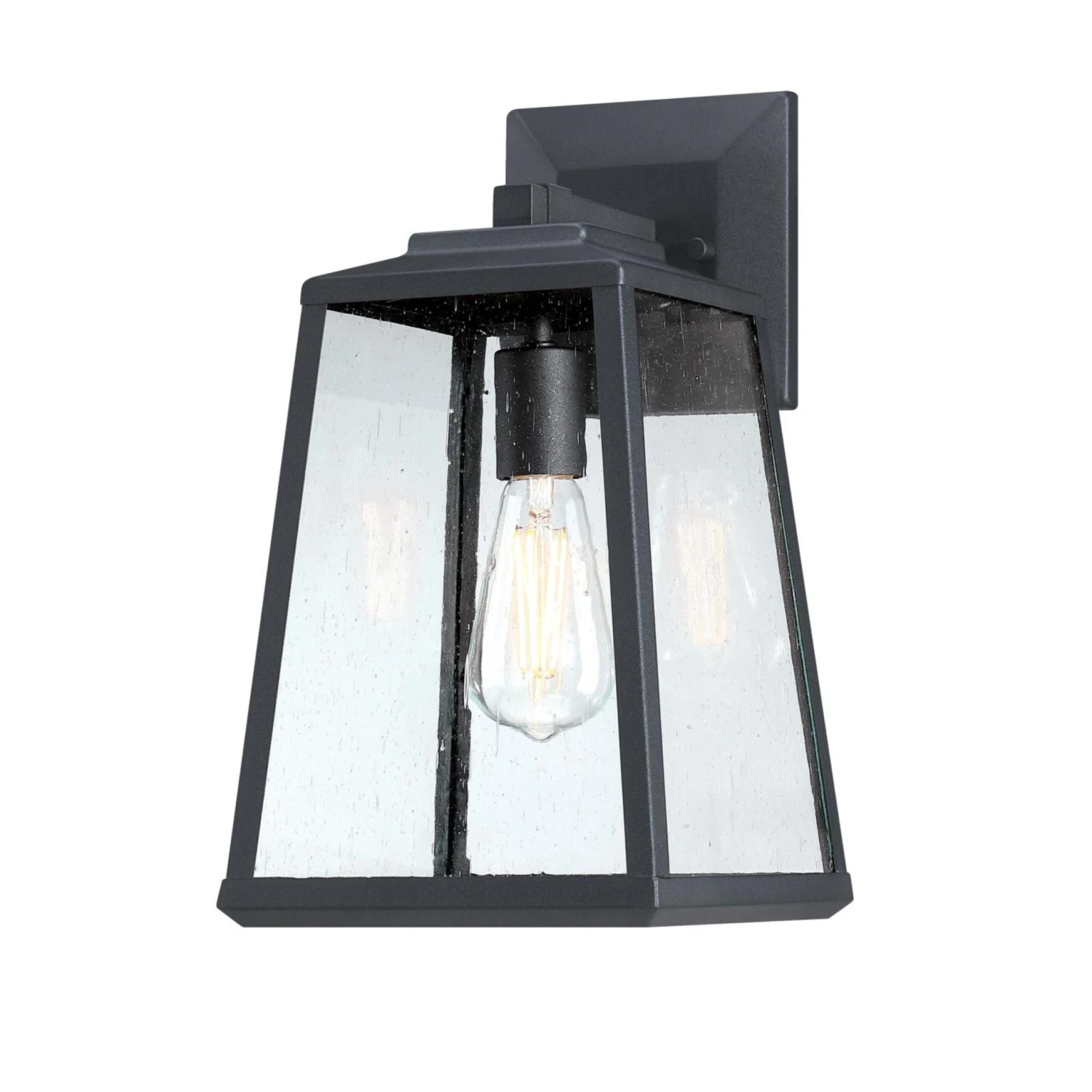 Add a welcoming glow to your home with the Westinghouse Ashdale outdoor wall lantern. Clear seeded glass and textured black finish give the bold geometric design its inviting appearance. Install this wall lantern by your front or back entryway or garage door. It can also serve as an accent for your porch, deck, or balcony. Westinghouse is a trusted, global brand. Westinghouse knows lighting and offers products with exceptional quality, reliability, and functionality. Product reference number 61142.