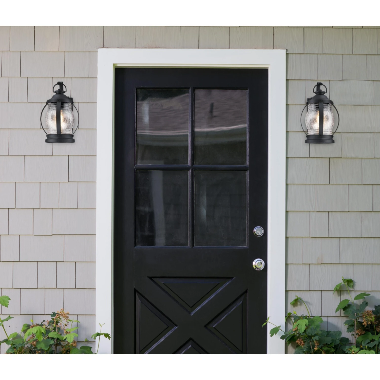 Westinghouse Lighting Canyon One Light Outdoor Wall Fixture With Dusk To Dawn Sensor, Textured Black Finish, Clear Crackle Glass