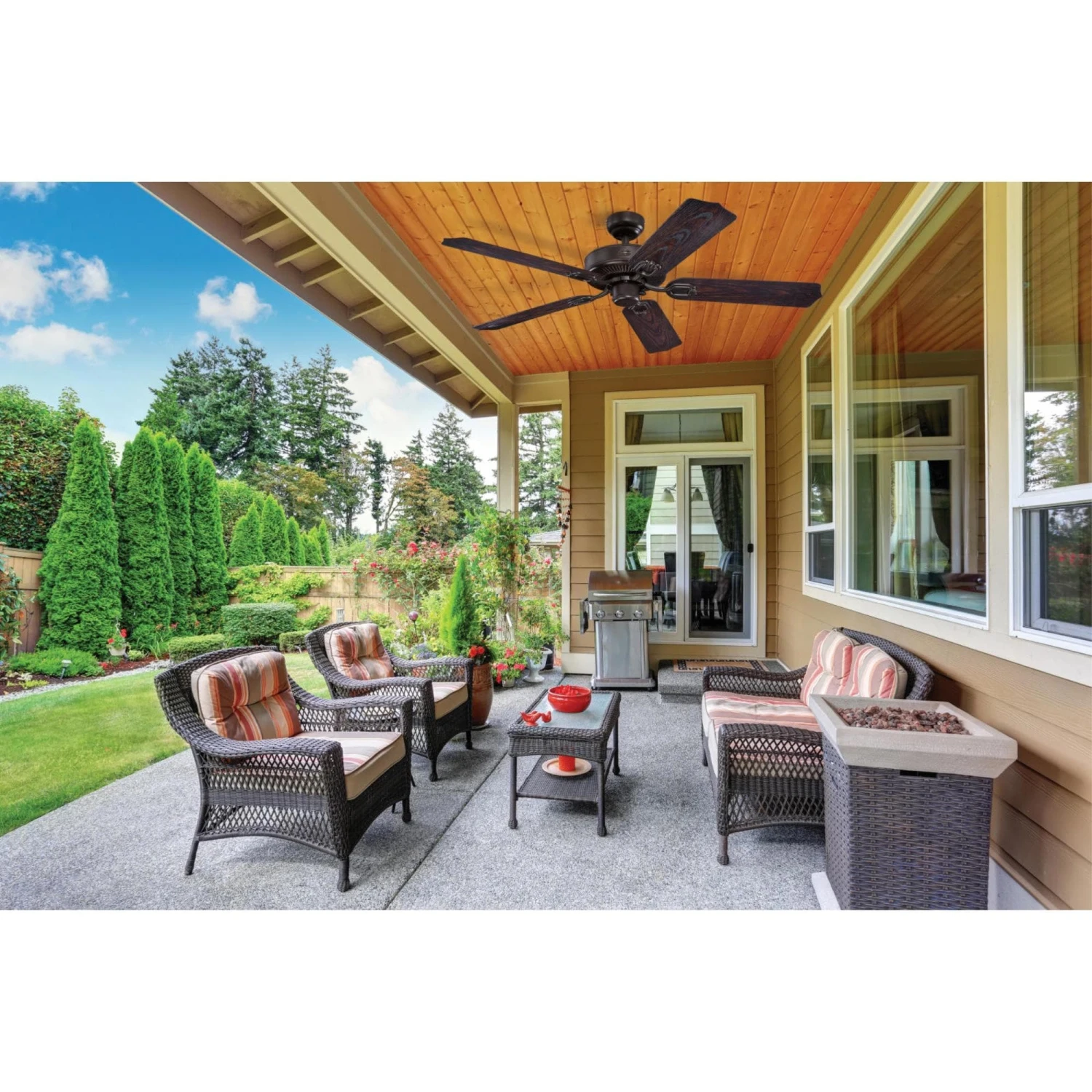 Enjoy indoor comfort outdoors with the Westinghouse Lighting Deacon 52″ Indoor/Outdoor Ceiling Fan. This fan is perfect for patios, verandahs, and gazebos, providing a pleasant breeze with its large 52-inch span. The fan features a chic oil rubbed bronze finish that pairs beautifully with its weatherproof dark walnut finish blades. Designed for large indoor and outdoor areas, including wet locations, this fan is a reliable choice for any space. Trust in the global brand of Westinghouse for exceptional quality and functionality. Product reference number 72168.